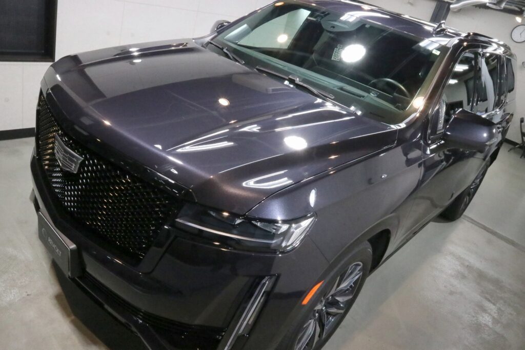 5.4mのボディということで、まずは車のサイズに驚きました。フロントグリルももちろん大きいのですが、オーナー様が汚れを気にされていたので、複数回に分けて洗浄と研磨を行いました。最初はブラックに見えましたが、染みや小傷を除去することにより、本来のボディ色が見えてきました。その上で、セラミックコーティング(リボルト・プロエクストリーム)を施工させていただいております。セラミックコーティングは濡れたような艶が特徴です。引き続きメンテナンスのお手伝いをさせていただきたくお願いいたします。洗車を含め、メンテナンスメニューがございますので、ぜひご利用ください。このたびは、ありがとうございました。