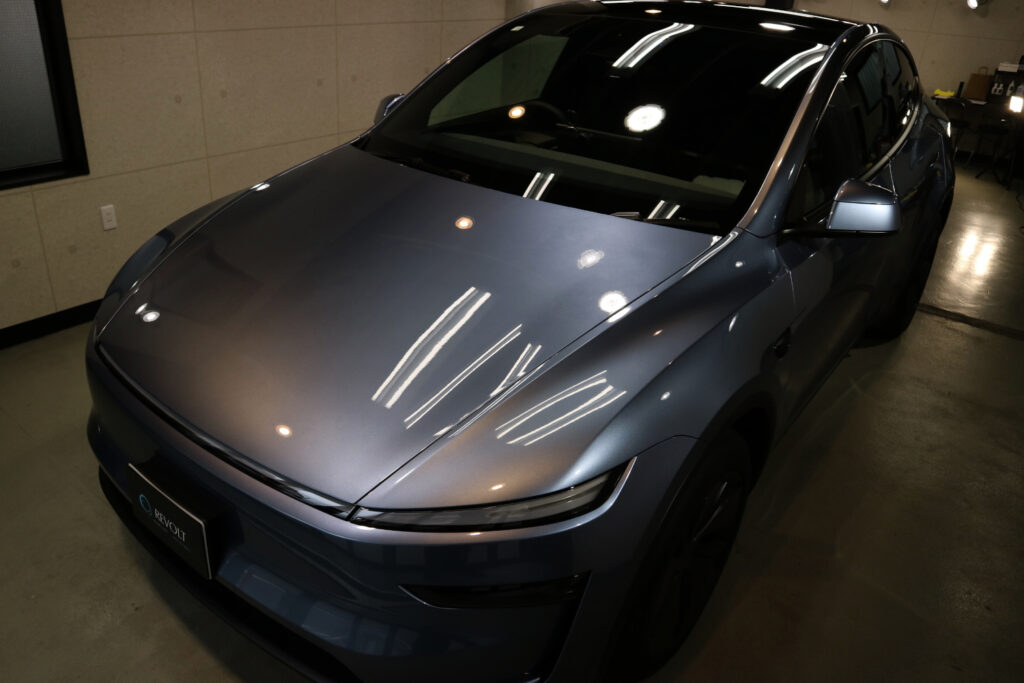 お話をさせていただきましたが、新車であってもしっかりと下地処理(クリアを大量に削るような研磨はしておりません)を行い、セラミックコーティング(リボルト・プロエクストリーム)を施工させていただいております。セラミックコーティングは濡れたような艶が特徴です。引き続きメンテナンスのお手伝いをさせていただきたくお願いいたします。洗車を含め、メンテナンスメニューがございますので、ぜひご利用ください。このたびは、ありがとうございました。