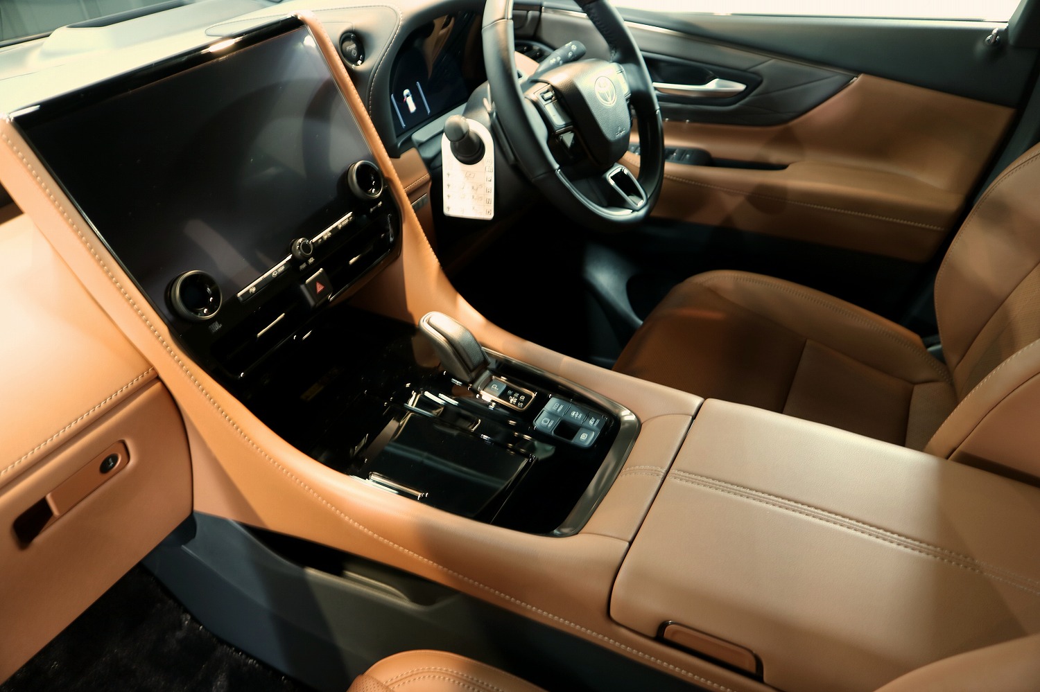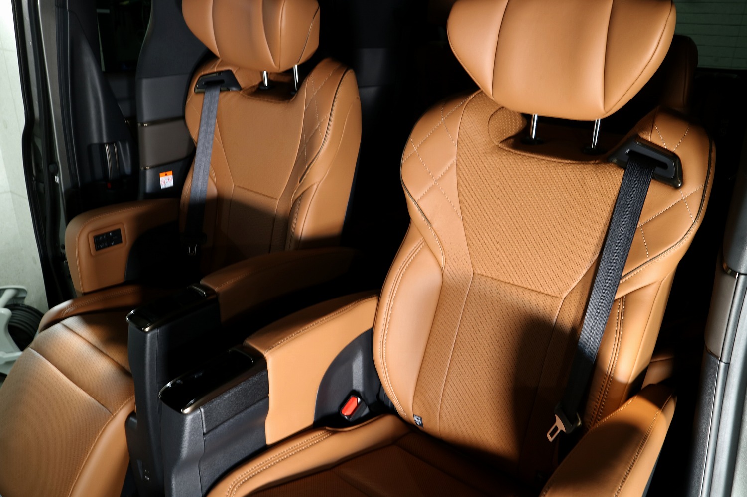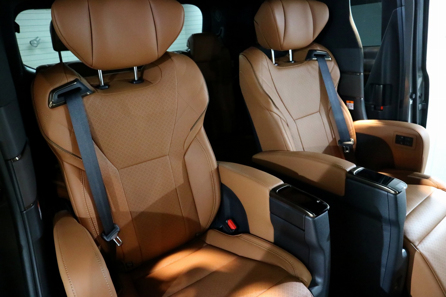 トヨタ・ヴェルファイア(40系)上位グレードに設定される「サンセットブラウン」内装は、重厚感と温かみを併せ持つ高級空間として高く評価されています。シートにはプレミアムナッパ本革が採用されており、しっとりとした手触りと体を包み込むような柔らかさが特徴です。ブラウンとブラックのコントラストを基調に、センターコンソールやドアトリムにはサテンメッキやスパッタリング仕上げが施され、上質感と現代的な艶を両立しています。ダッシュボードやピラーにもソフトパッド素材が使われており、手の触れる部分すべてで“高級サルーン”のような質感を感じることができます。照明デザインも温色寄りで統一され、夜間には柔らかく室内を包み込みます。ユーザーからは「落ち着いた色調で長時間乗っても疲れにくい」「明るすぎず高級ホテルのラウンジのよう」といった声が多く、家族用途だけでなくビジネス送迎にも好印象です。さらに、防振構造とウレタン多層構成により乗り心地も非常に静かで、見た目・触感・居心地のすべてにおいて“最上級ミニバン”にふさわしい仕上がりとなっています。