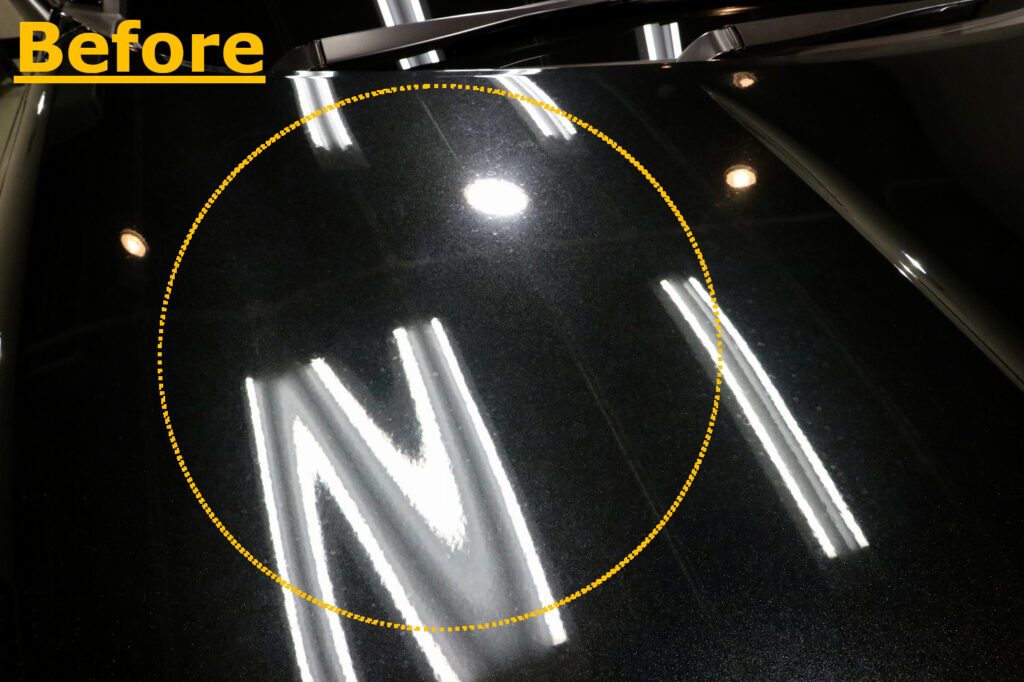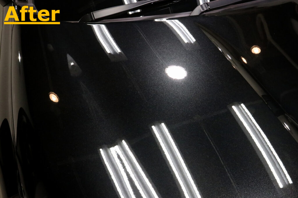 オーナー様は、新車でご購入されたそうですが、新車時に施したコーティングの効果がなくなってきたとのことで、今回は当店にご用命くださいました。リボルトでは、コーティングの前に、高度な下地処理(Revolt Adjust System)を行いますので、経年車であってもできるかぎりキズや汚れ、水染みを除去するための下地処理を行なってからコーティングを行います。下地処理は見た目はもちろんのことですが、コーティング剤の定着を良くします。