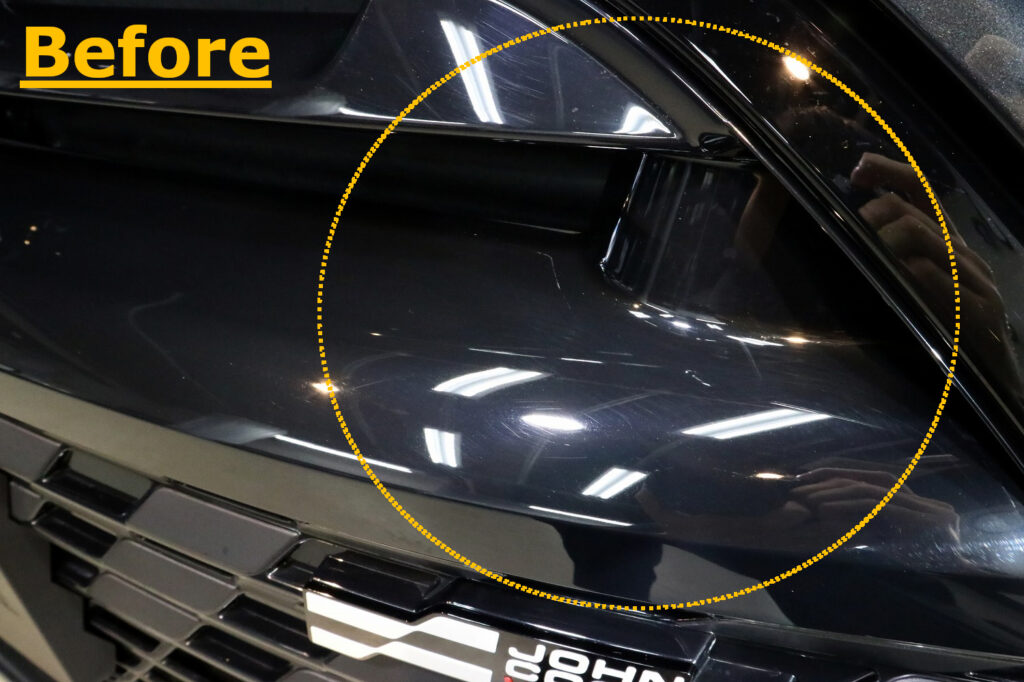 樹脂製のバンパー塗装樹脂ですが、洗車キズと思われる多くのキズがありました。