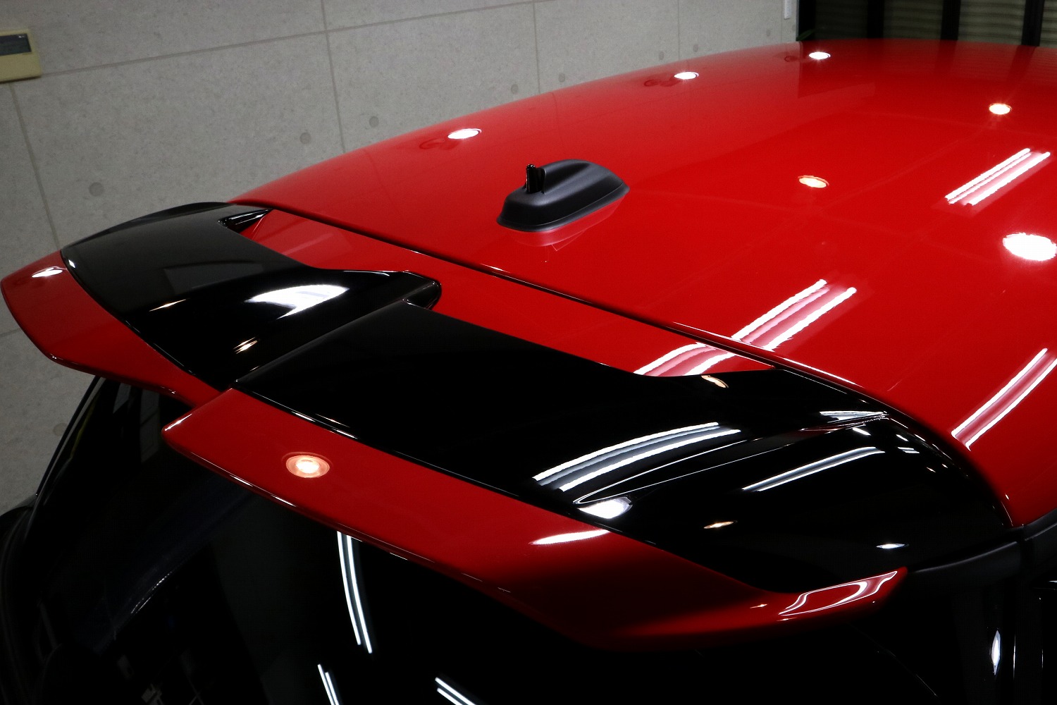 オーナー様は今回、新車でご購入をされてのご入庫となりました。オリジナルのエアロパーツがかっこよくセットされていましたが、細かいキズが散見されました。リボルトでは、コーティングの前に、高度な下地処理(Revolt Adjust System)を行いますので、ディーラーから直後にご入庫いただいても少しお乗りいただいた後にご入庫いただいても、変わりはありません。下地処理は見た目はもちろんのことですが、コーティング剤の定着を良くします。