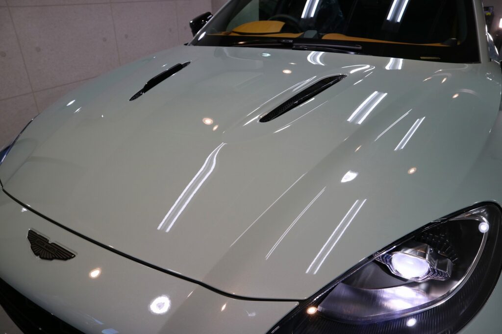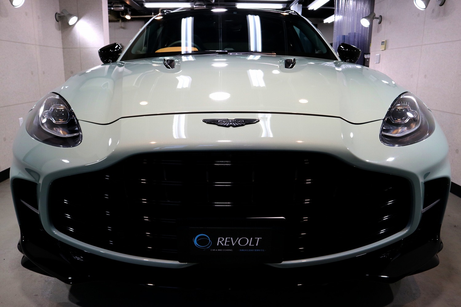 オーナー様は、今回新車でご購入をされてのご入庫となりました。アストンマーティン車は当店では初めての施工となり塗装は硬く輸入車にしてはキズは少ないほうでしたが、ピアノブラック樹脂パーツには小傷が散見されましたので、コーティングの前に、高度な下地処理(Revolt Adjust System)を行いできる限り除去をいたしました。下地処理は見た目はもちろんのことですが、コーティング剤の定着を良くします。