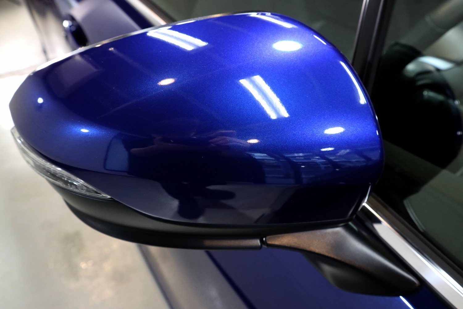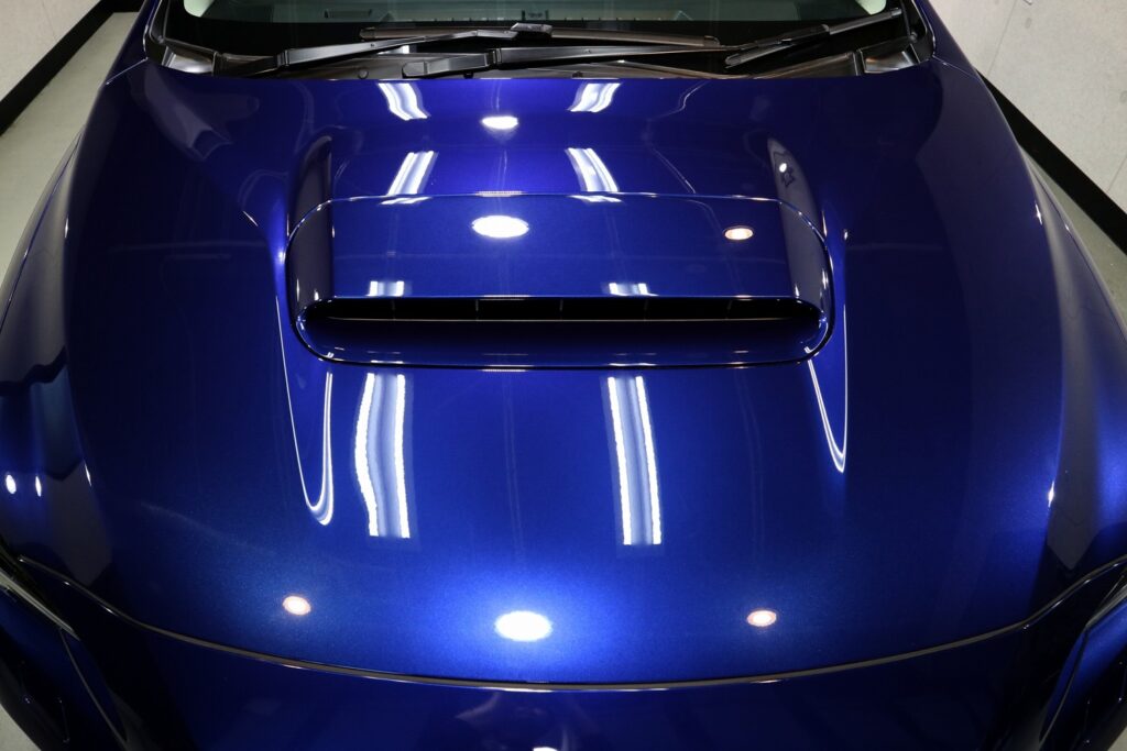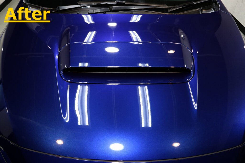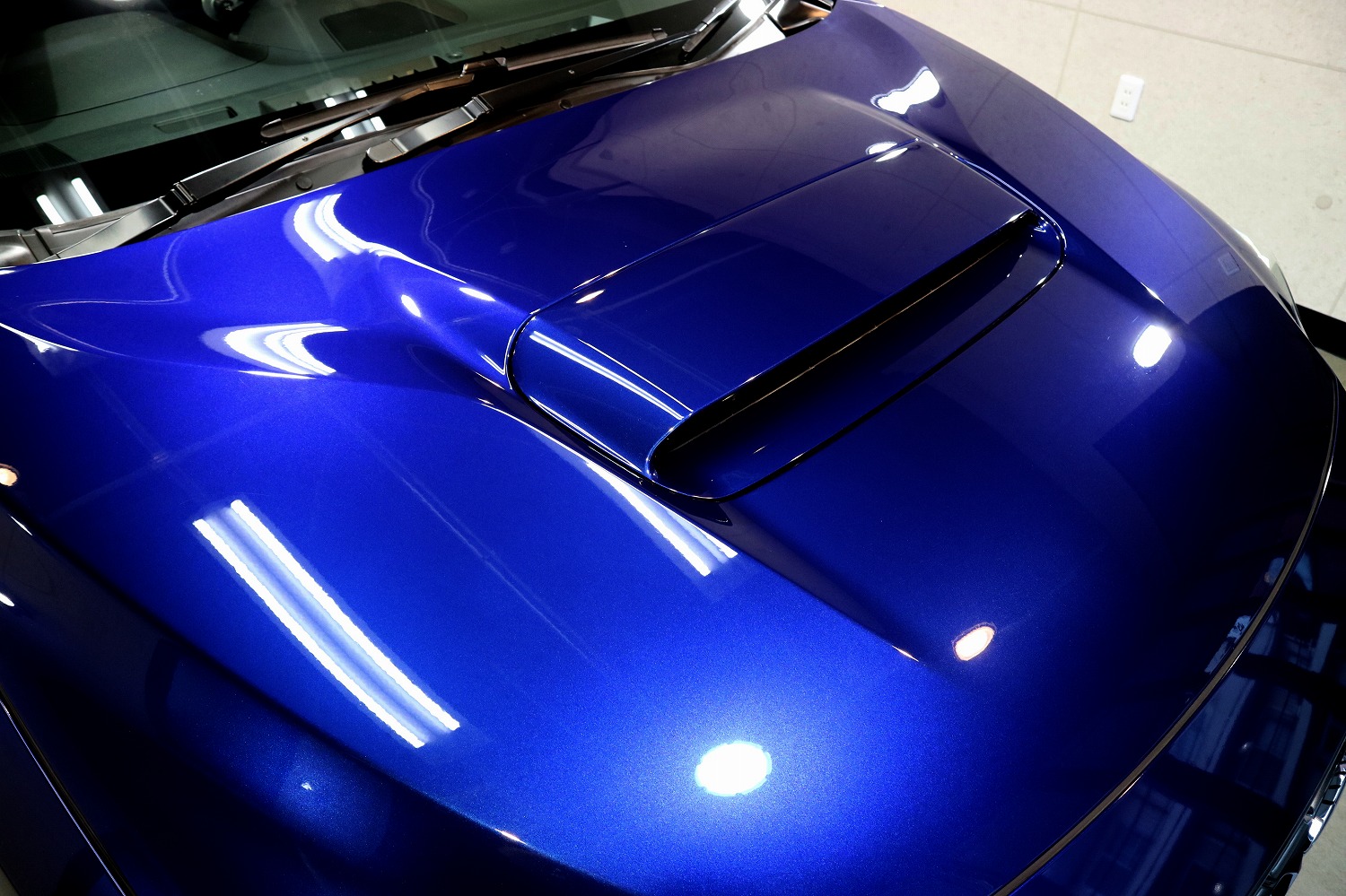 リボルトでは、コーティングの前に、高度な下地処理(Revolt Adjust System)を行いますので、経年車であってもできるかぎりキズや汚れ、水染みを除去するための下地処理を行なってからコーティングを行います。下地処理は見た目はもちろんのことですが、コーティング剤の定着を良くします。今回は5年の経年車ですので、下地処理にも手間がかかりました。最初は反射光が乱反射して白っぽく見えたのですが、下地処理後は元のラピスブルーパールがよみがえりました。