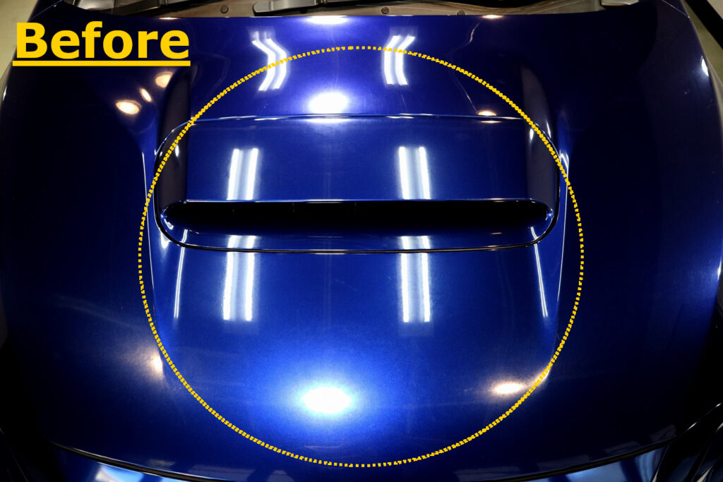ボンネットは水平のパーツであるためどうしても染みが付きやすい状態にあります。しかし車の顔なのでキズや水染みをできる限り除去します。
