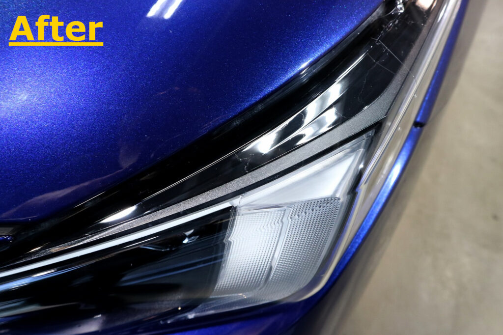 5年もの経年はヘッドライトのハードコートが剥離させることがあります。ハードコートの完全に補修をするには一度完全に剥がす必要がありますが、軽い剥離の場合は下地処理により研磨、コーティングにより目立たなくすることは可能です。