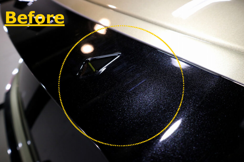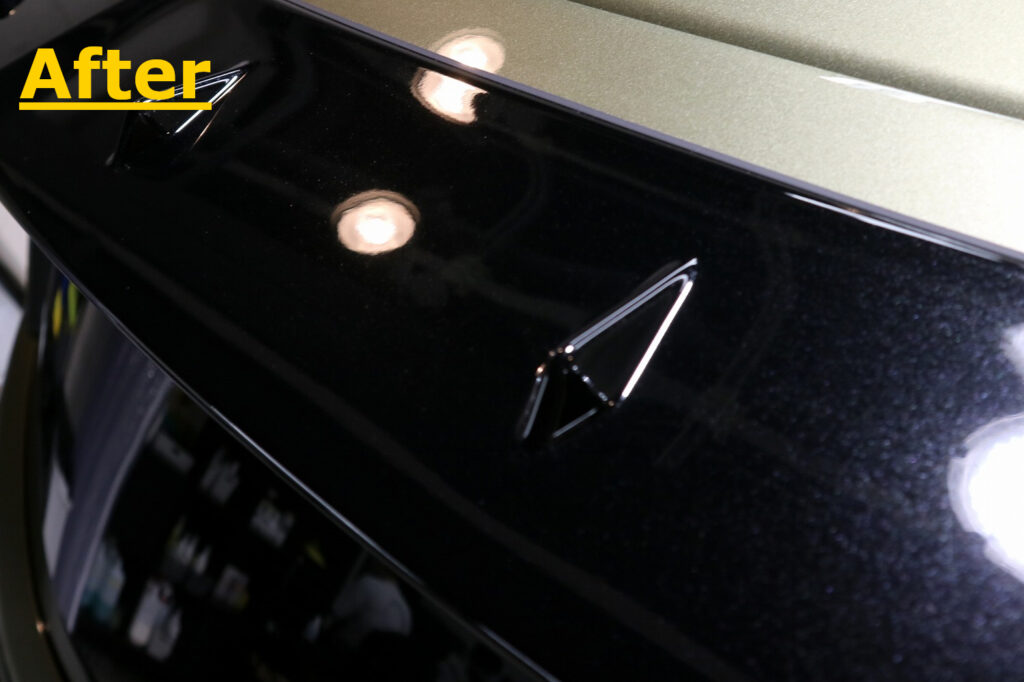今回は新車ではありますが、オーナー様は少しだけお出掛けをされたこともあり、樹脂のパーツにキズが入っていました。下地処理は浅いキズについては除去することができます。