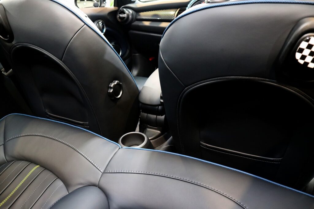 また、今回はシートコーティングのご用命もいただきました。シートコーティングはよくある油脂系のワックスと異なり、柔らかいガラスによるコーティングです。自動車のシート表面に透明な保護被膜を形成し、日常的に発生しやすい汚れや擦れから素材を守る施工です。飲み物のこぼれや皮脂汚れ、衣類の色移りなどを防ぎ、撥水性・防汚性に優れているため、簡単な拭き取りで清潔さを維持できるのが大きな特徴です。質感を損なわず自然な仕上がりになる点も高く評価されています。紫外線や摩耗による劣化を抑え、シートの美観を長期間保つ効果が期待できるため、新車時の状態を維持したい方や、長く大切に乗りたいユーザーに適しています。さらにプロの技術で施工されるため耐久性が高く、日々のメンテナンス負担を軽減できるのも魅力です。以下のような場所にコーティングを行うことができます。