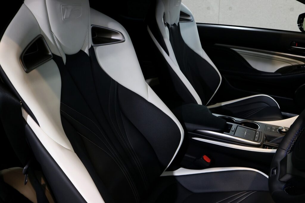 また、今回はシートコーティングのご用命もいただきました。シートコーティングはよくある油脂系のワックスと異なり、柔らかいガラスによるコーティングです。自動車のシート表面に透明な保護被膜を形成し、日常的に発生しやすい汚れや擦れから素材を守る施工です。飲み物のこぼれや皮脂汚れ、衣類の色移りなどを防ぎ、撥水性・防汚性に優れているため、簡単な拭き取りで清潔さを維持できるのが大きな特徴です。質感を損なわず自然な仕上がりになる点も高く評価されています。紫外線や摩耗による劣化を抑え、シートの美観を長期間保つ効果が期待できるため、新車時の状態を維持したい方や、長く大切に乗りたいユーザーに適しています。さらにプロの技術で施工されるため耐久性が高く、日々のメンテナンス負担を軽減できるのも魅力です。以下のような場所にコーティングを行うことができます。