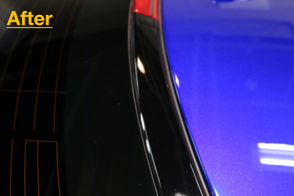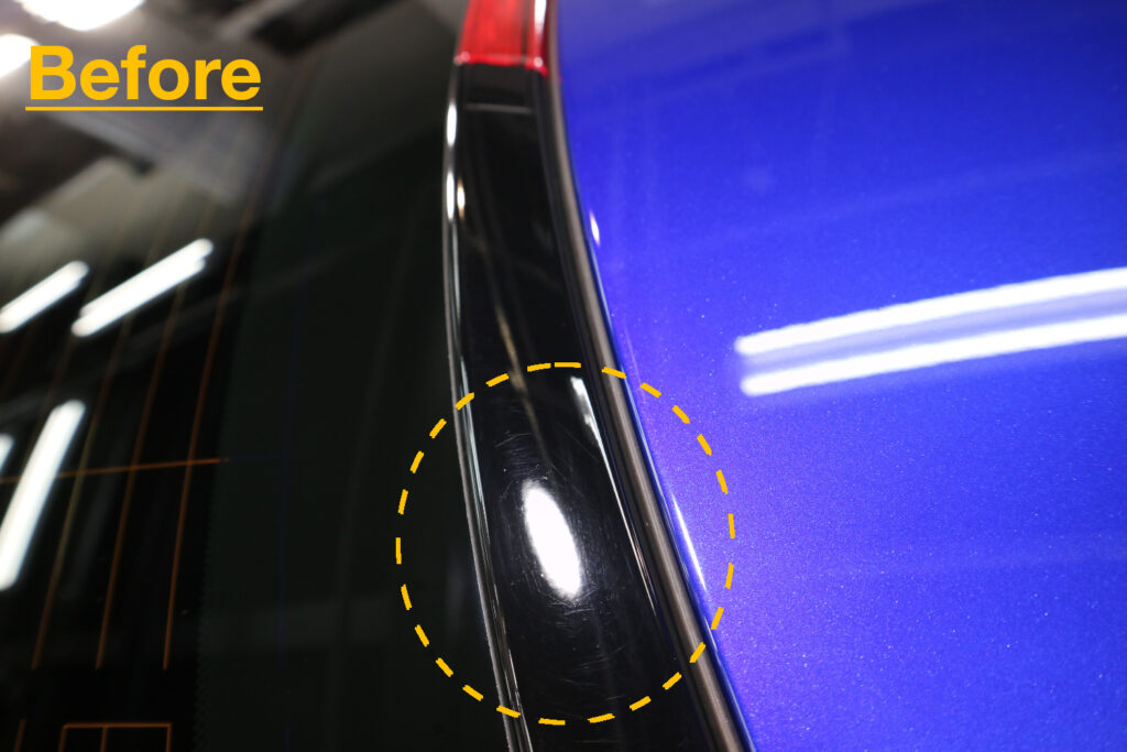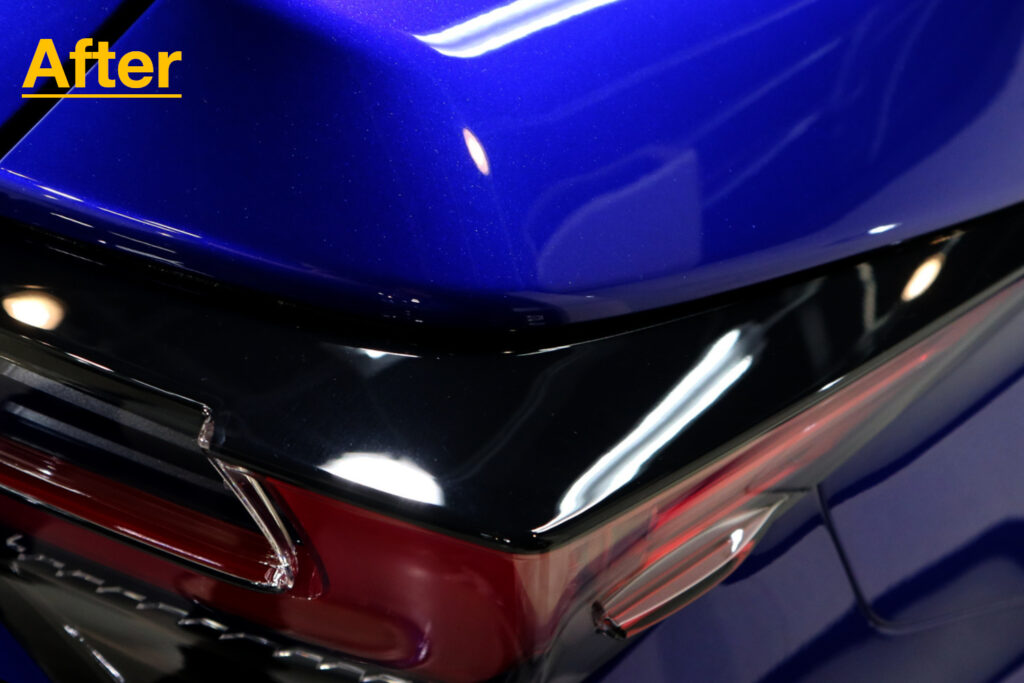 東京都世田谷区にお住まいのオーナー様は納車後間もなくご来店をいただきましたが、RCFは既に完売であるため今回の個体はディーラーショールームに置かれていたモデルだったそうです。そのため新車ではあるのですが細かいキズが主に樹脂部にありました。リボルトでは例え新車であっても、コーティングの前に、高度な下地処理(Revolt Adjust System)を行います。見た目はもちろんのことですが、コーティング剤の定着を良くします。