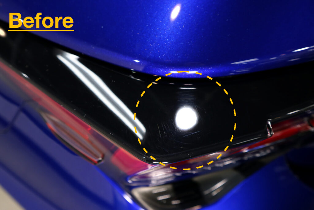 テールランプも同様に樹脂製なのでキズは付きやすい箇所の一つです。キズを除去することによりイメージが大きく変わります。