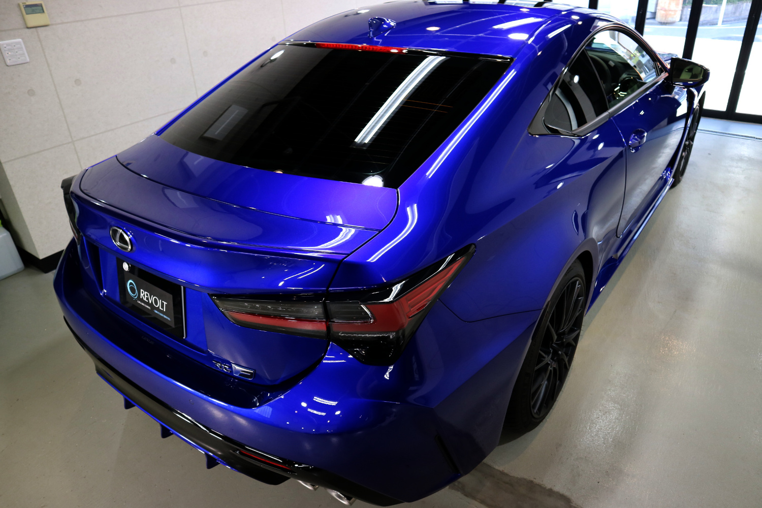 東京都世田谷区にお住まいのオーナー様は納車後間もなくご来店をいただきましたが、RCFは既に完売であるため今回の個体はディーラーショールームに置かれていたモデルだったそうです。そのため新車ではあるのですが細かいキズが主に樹脂部にありました。リボルトでは例え新車であっても、コーティングの前に、高度な下地処理(Revolt Adjust System)を行います。見た目はもちろんのことですが、コーティング剤の定着を良くします。