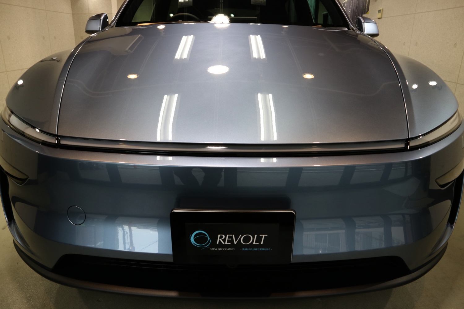 オーナー様は、納車後にすぐ当店にご入庫いただいたので、ボディの状態は良い状態でした。リボルトでは、コーティングの前に、高度な下地処理(Revolt Adjust System)を行います。新車であってもケミカル剤と研磨を行います。もちろん必要以上にクリア塗装を削ることはしません。下地処理は見た目はもちろんのことですが、コーティング剤の定着を良くします。